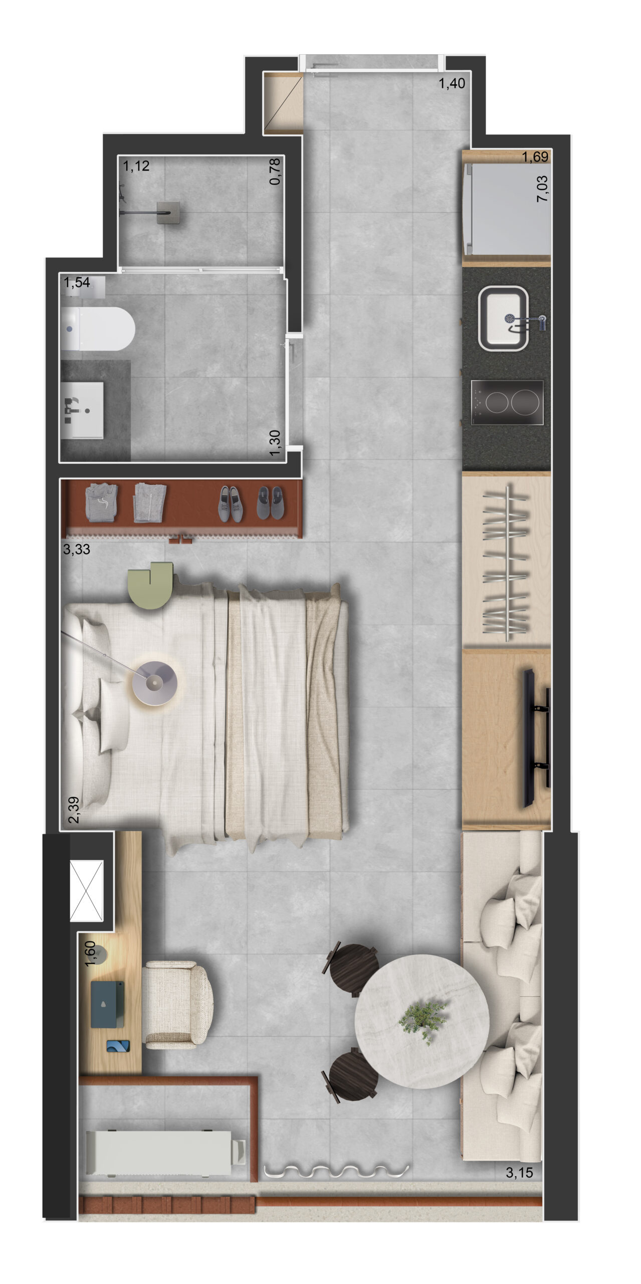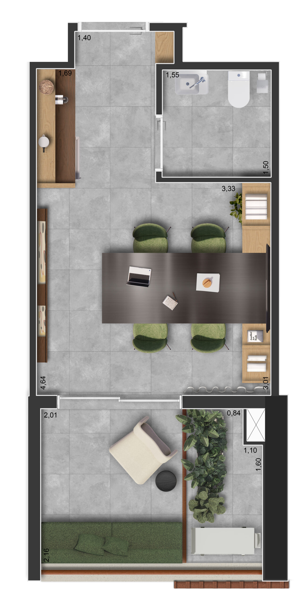 É o único da Região Leste com essa metragem, atendendo à demanda latente da região. Um espaço otimizado e inteligente que abrange tudo o que é essencial para uma vida pessoal, profissional e autônoma.