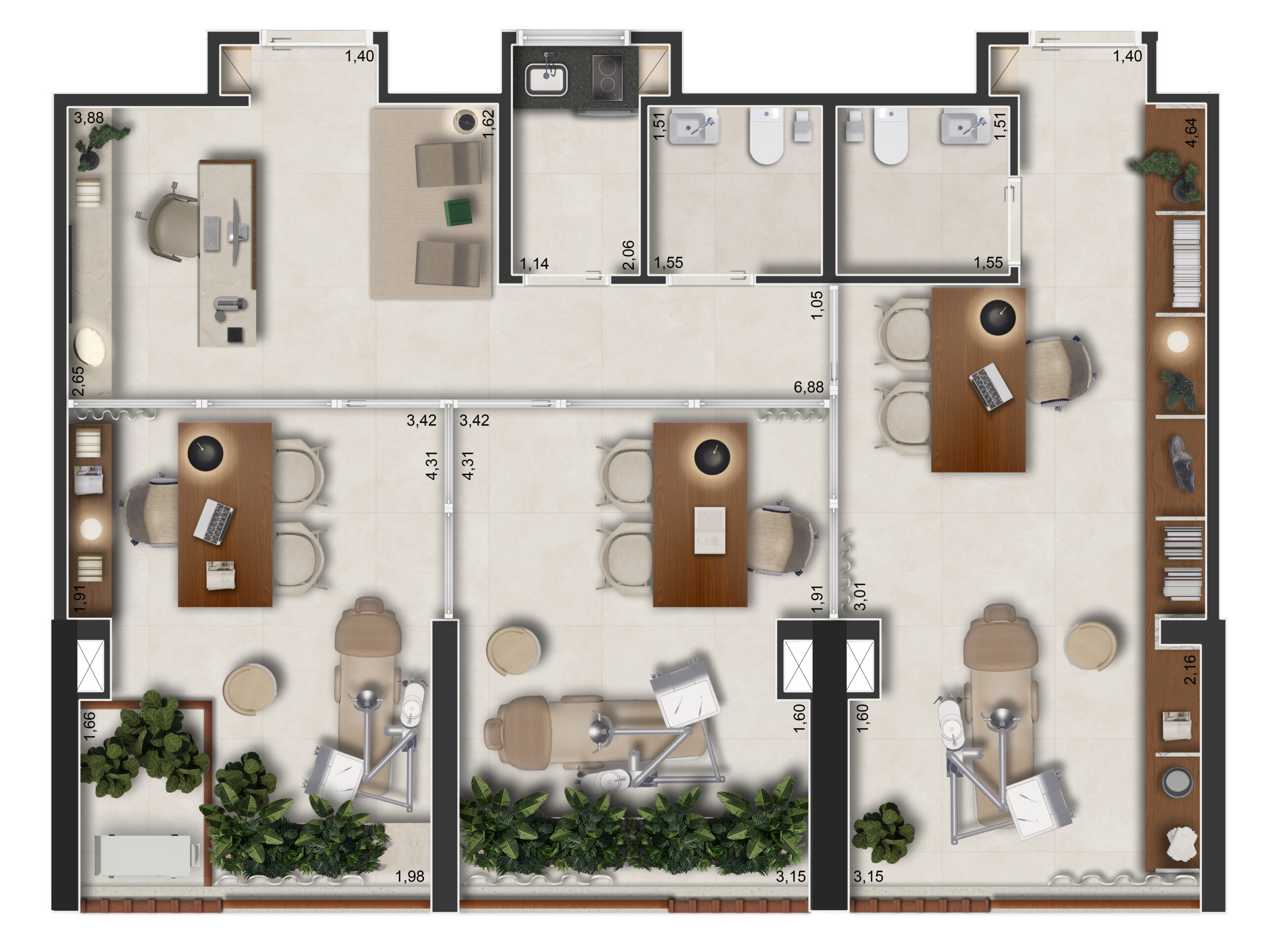 Espaços projetados para maximizar eficiência, oferecendo um custo de locação ideal e baixa necessidade de manutenção. Um ativo rentável e exclusivo, perfeito para quem busca um investimento seguro.