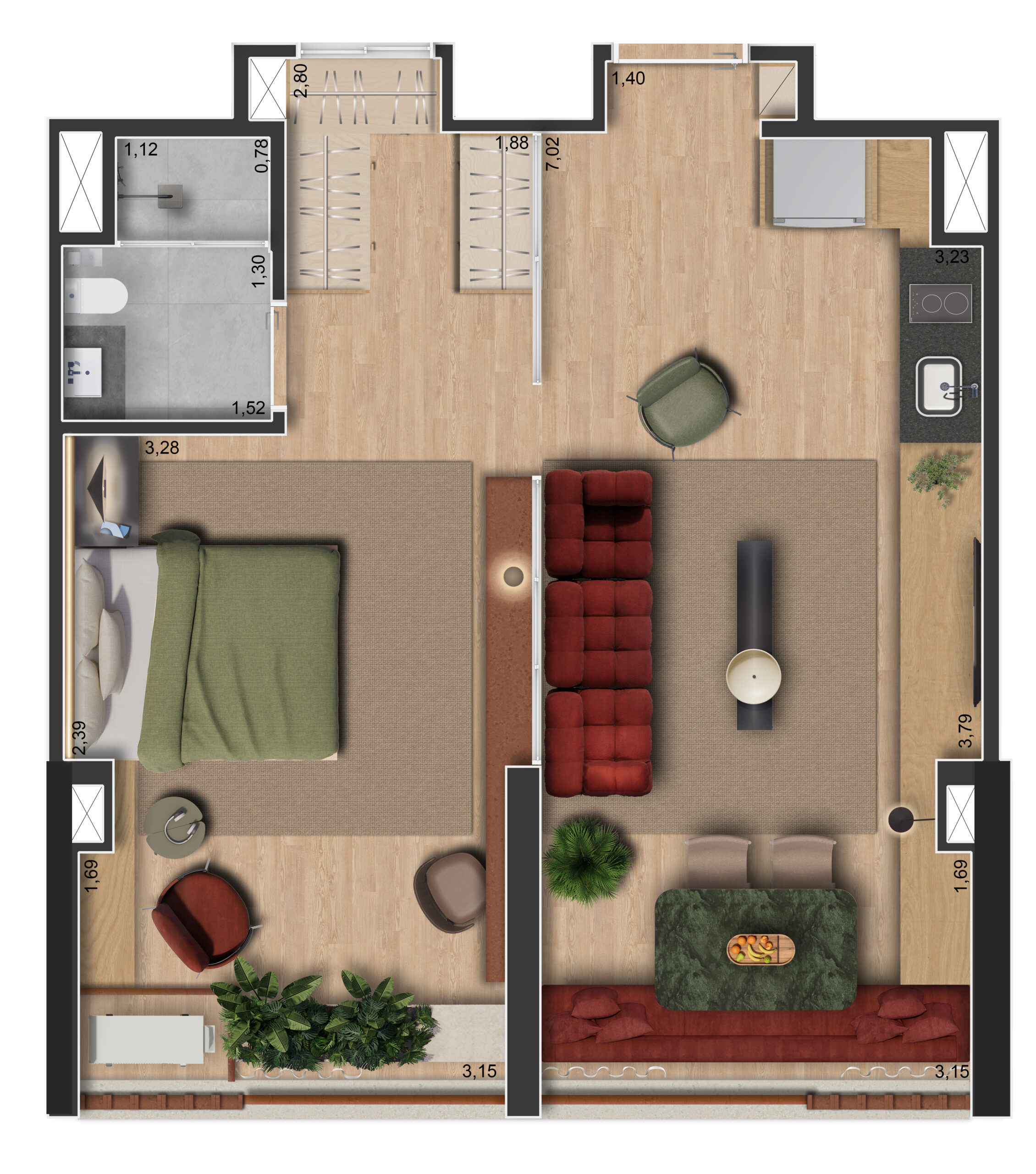 Unidades modulares com metragens especiais que possibilitam novos começos potentes, atendendo a sonhos de todos os tamanhos. Um pilar essencial que potencializa a rentabilidade e a valorização do empreendimento.